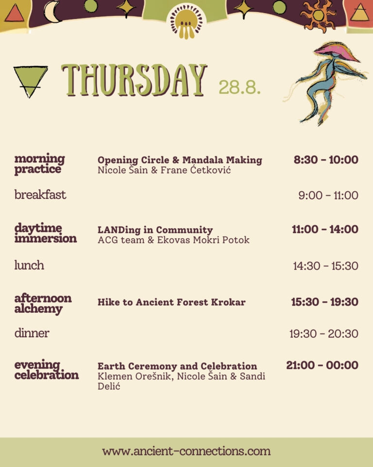 After connecting with the land by making mandala and connecting with the community of Mokri Potok, we will go on a hike to visit ancient forest Krokar that has been intact even before the last ice age – this forest was the lowest point of the ice sheet that was covering whole Europe to the north.