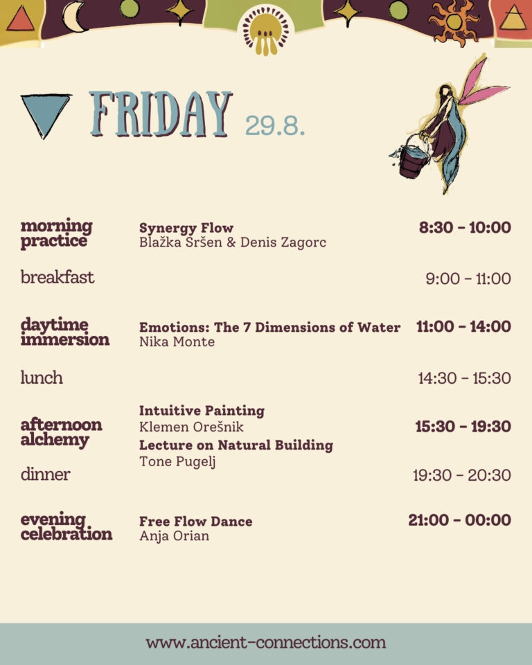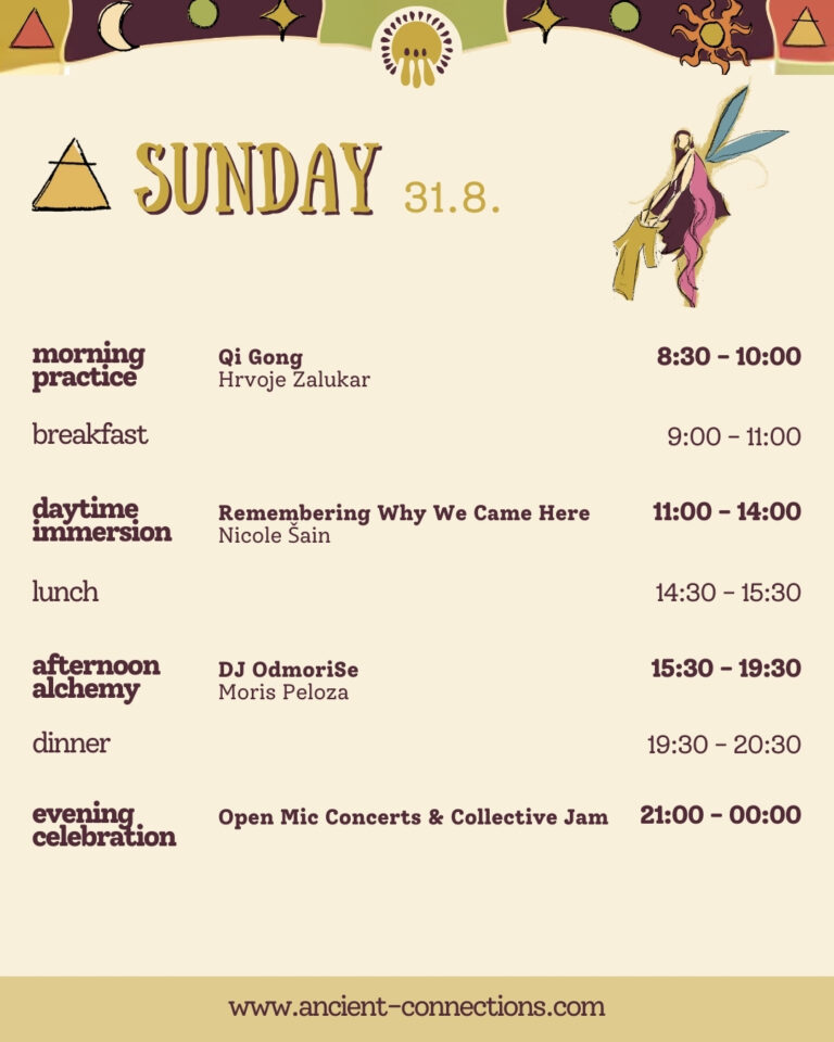 We will structure the final evening throughout the gathering and try to give space to all of you who want to share. After that we will indulge into great collective jam – cocreation of sonic spiral.